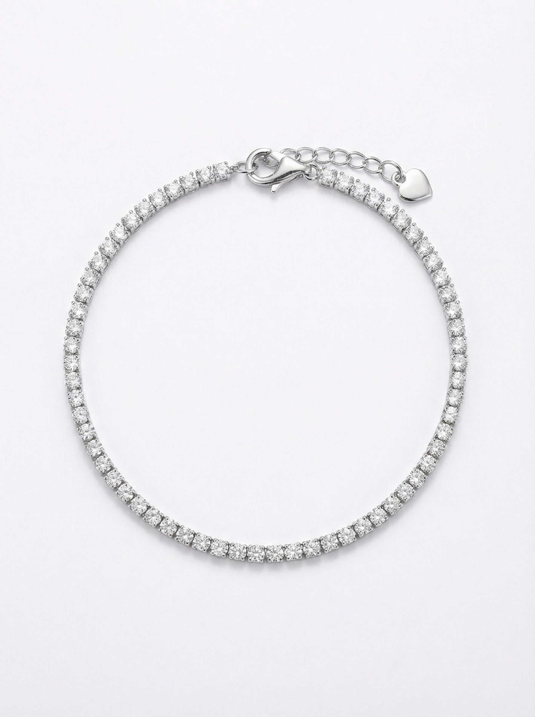 Un simbol al rafinamentului care nu se demodează niciodată. Această brățară de tip Tennis, realizată din Argint 925, este "mica rochie neagră" a bijuteriilor: esențială, versatilă și incredibil de elegantă. Designul este simplu și de efect: un râu continuu de cristale de zirconiu rotunde, perfect aliniate, care oferă o strălucire fluidă și neîntreruptă în jurul încheieturii. Spre deosebire de modelele rigide clasice, această versiune modernă dispune de un lanț prelungitor practic, terminat cu o inimioară discretă, permițând ajustarea perfectă pe orice mână. Este accesoriul ideal pentru a completa o ținută de seară, o rochie de mireasă sau pentru a adăuga o notă de lux ținutelor office.