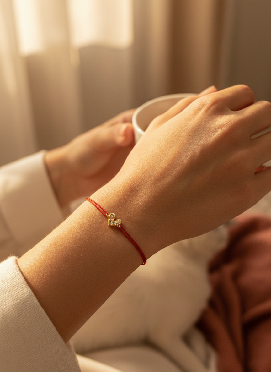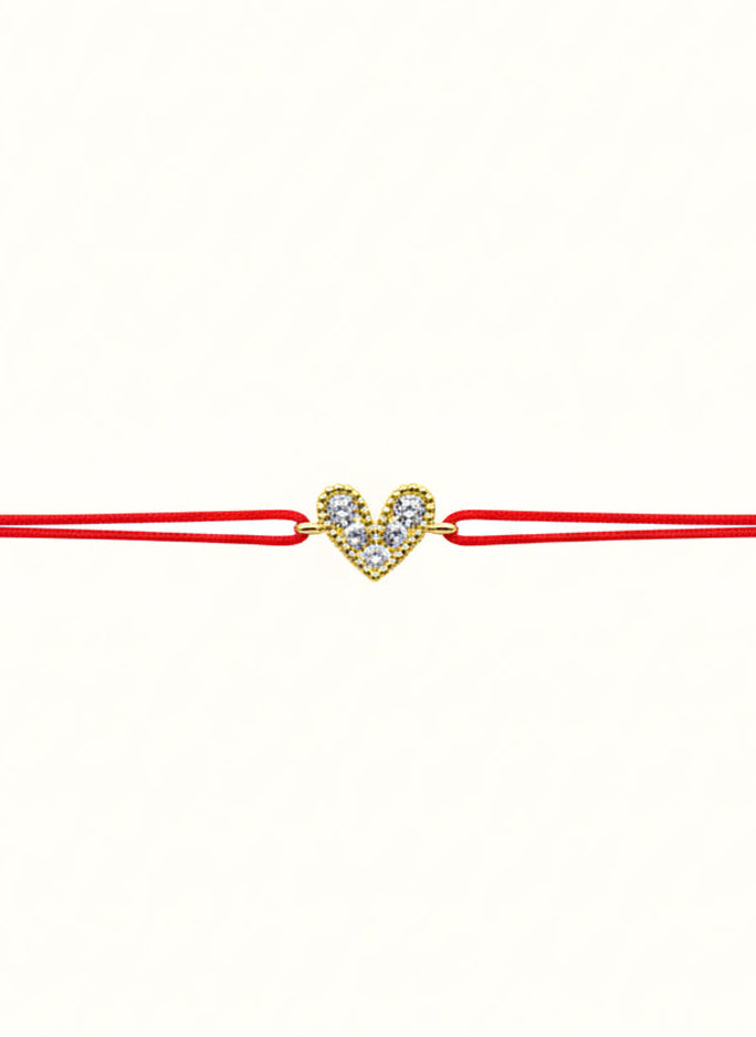 Un simbol clasic al iubirii, redat într-o formă delicată și plină de strălucire. Talismanul central, o inimă complet pavată cu cristale transparente, captează lumina din orice unghi, oferind o notă de eleganță discretă. Marginea aurie, fin texturată cu mici puncte metalice, încadrează perfect strălucirea pietrelor, transformând acest accesoriu pe șnur roșu într-o declarație de afecțiune pură și stil atemporal.