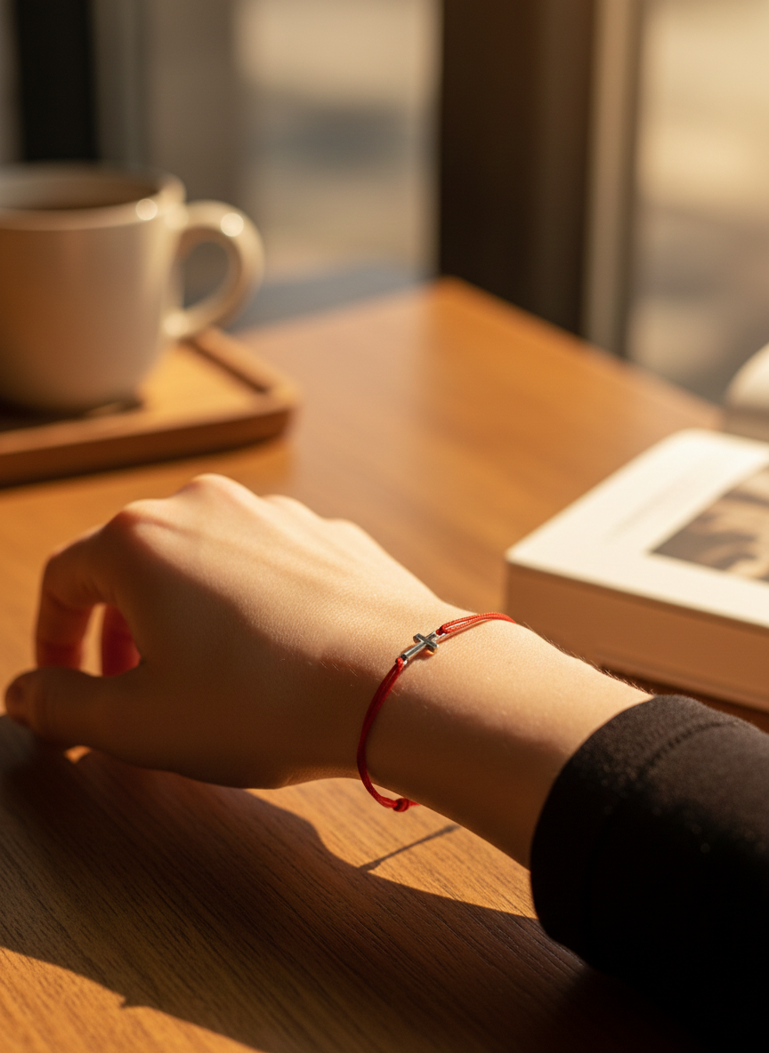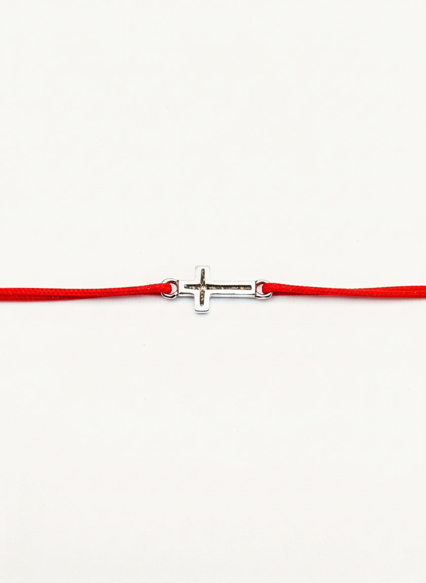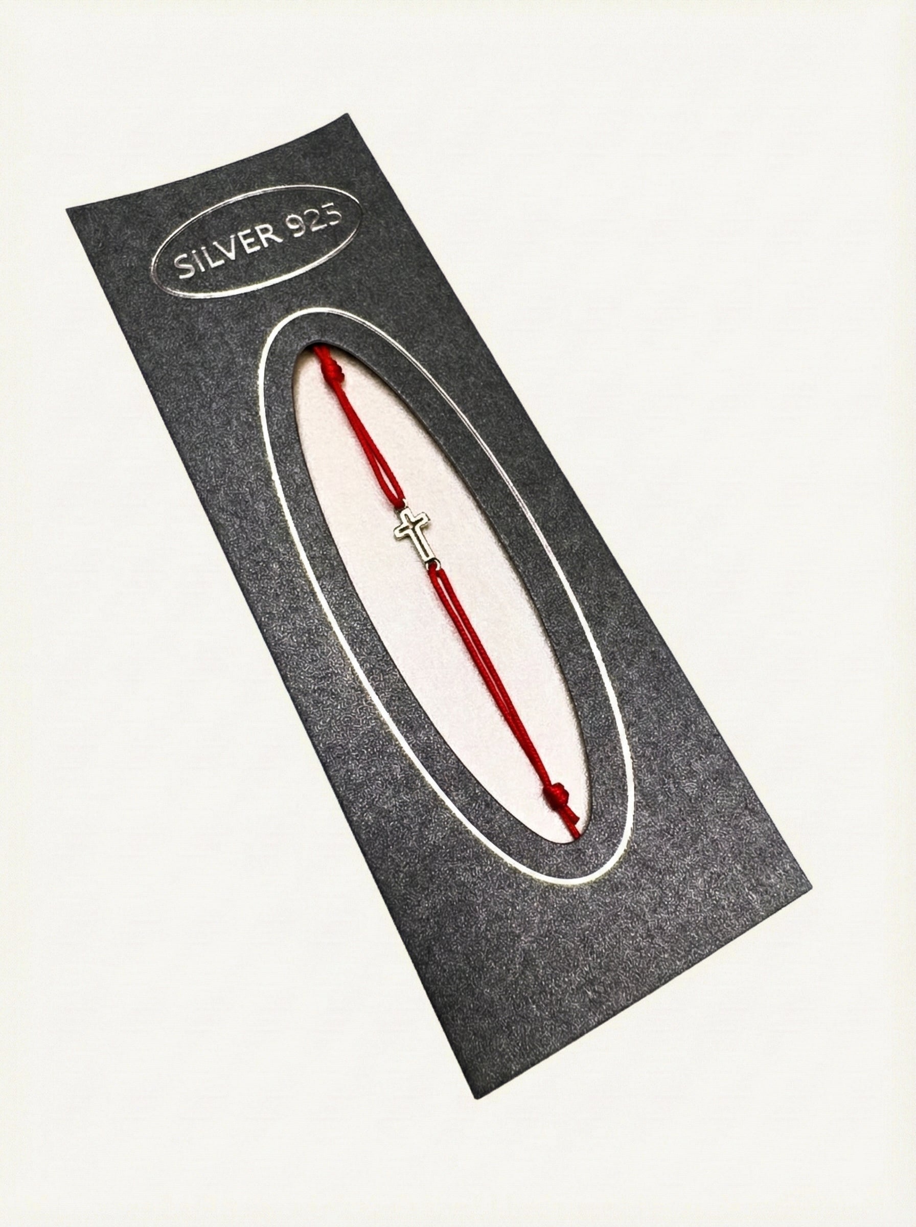 Un simbol al speranței care te însoțește la fiecare pas. Talismanul din Argint 925 are forma unei cruci latine, dar montată orizontal pentru a se așeza natural și confortabil pe încheietura mâinii. Designul este unul detaliat: conturul lucios încadrează un interior texturat, ușor granulat, care oferă profunzime și un caracter distinct piesei. Prinsă pe șnurul roșu, această brățară este o declarație discretă de credință și un scut spiritual împotriva obstacolelor.
