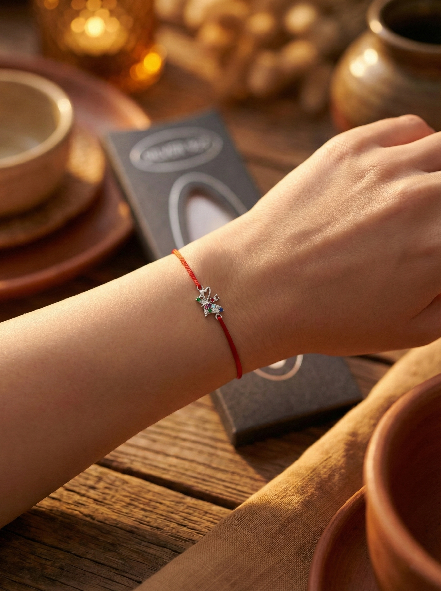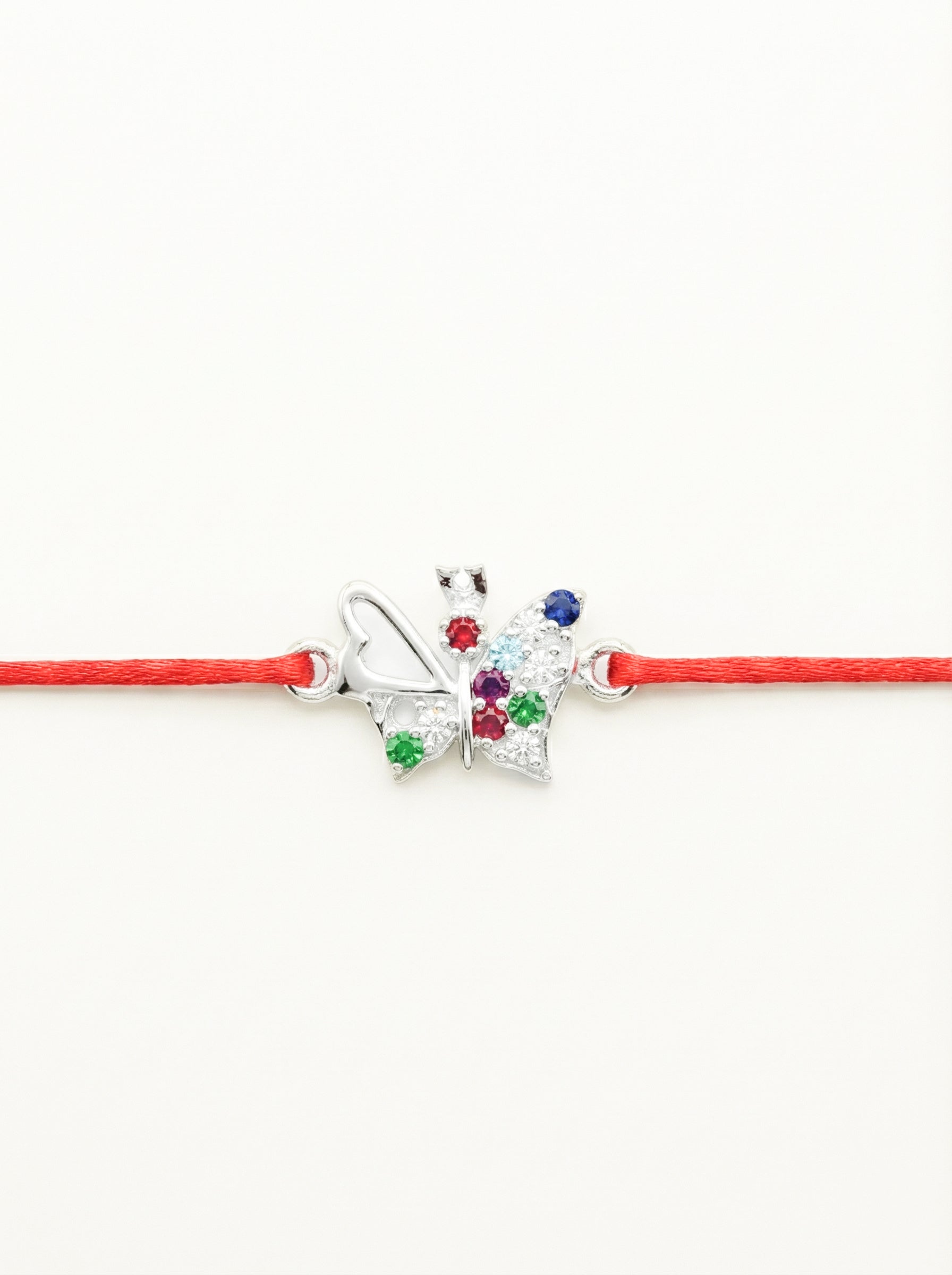 O bijuterie plină de fantezie, ce surprinde frumusețea diversității și a transformării. Talismanul din Argint 925 impresionează prin designul său creativ și asimetric: o aripă este un contur fin și modern de argint, lăsând pielea să se vadă, în timp ce cealaltă aripă și corpul sunt pavate cu cristale în culori vibrante (roșu, verde, albastru, violet). Acest contrast jucăuș, așezat pe șnurul roșu, transformă brățara într-un simbol al bucuriei de a trăi și al libertății de a fi tu însăți.