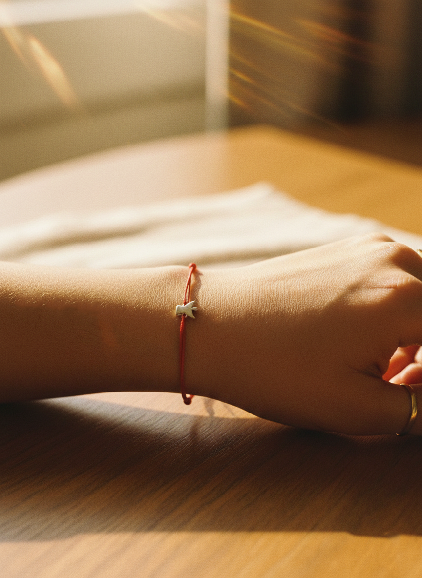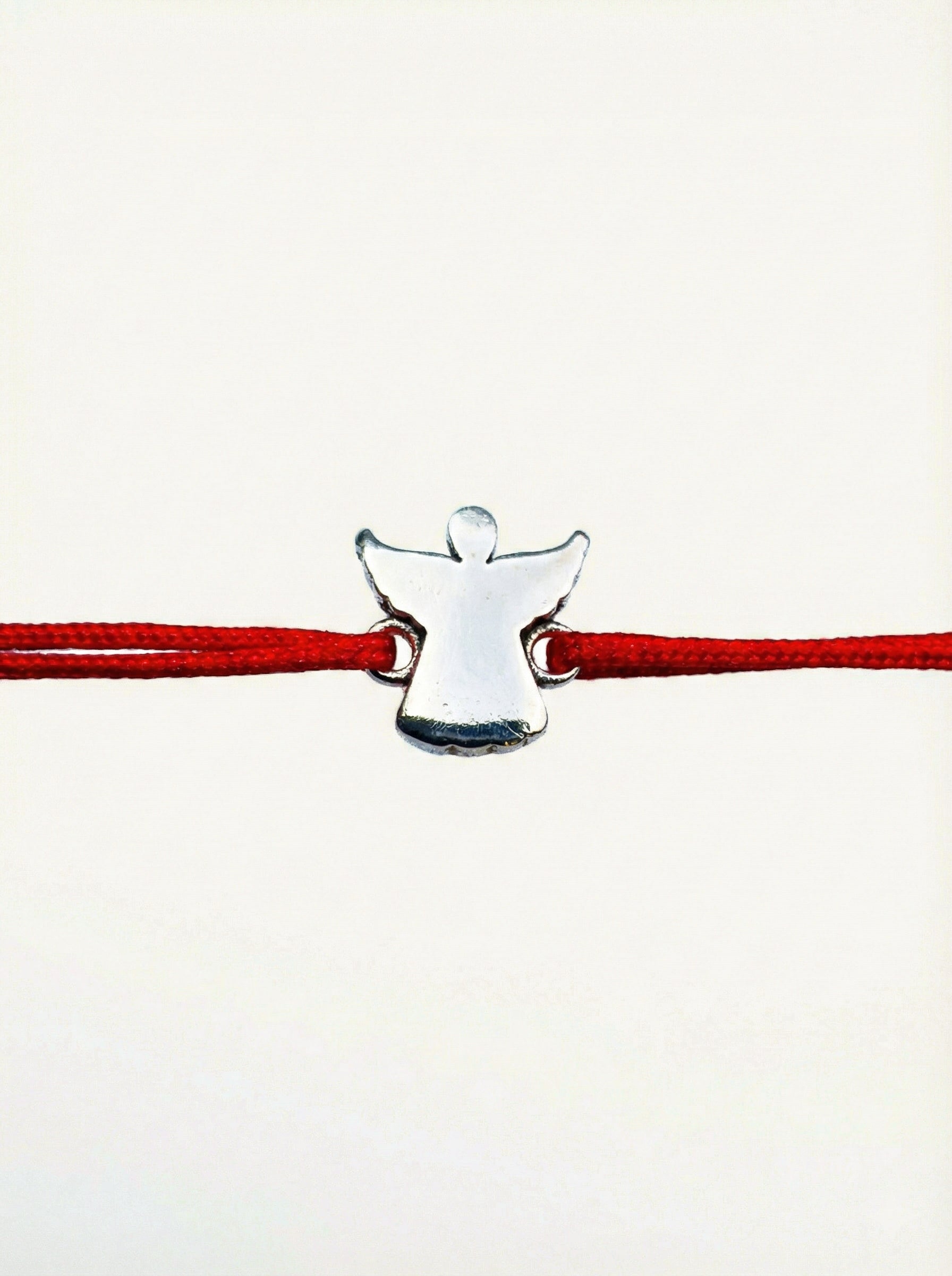O prezență discretă, dar puternică, ce veghează asupra pașilor tăi. Talismanul din Argint 925 ia forma siluetei unui înger stilizat, cu aripile deschise, finisat cu un luciu impecabil care reflectă lumina. Simplitatea designului, lipsit de pietre sau ornamente inutile, subliniază puritatea simbolului și conexiunea spirituală sinceră. Prinsă pe șnurul roșu, această brățară devine un scut simbolic împotriva energiilor negative și un memento că nu ești niciodată singură.
