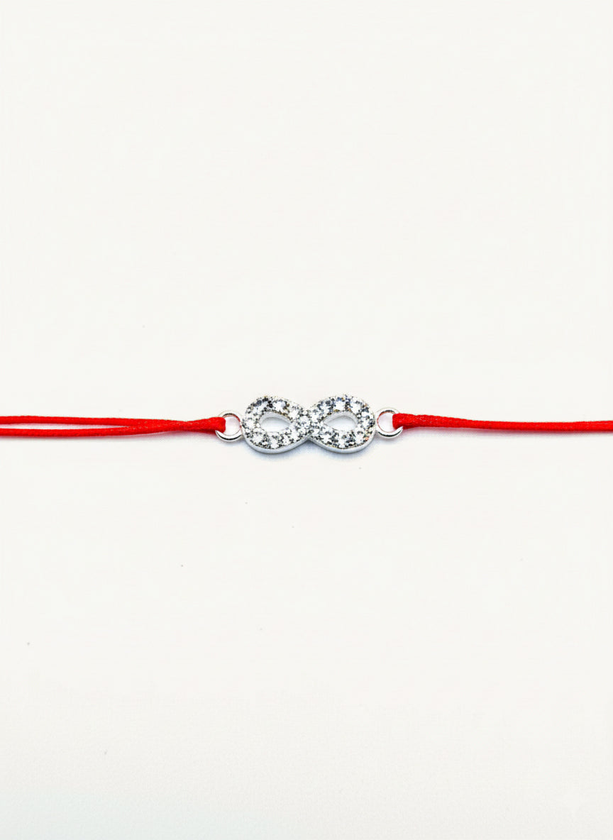O promisiune care strălucește la infinit. Talismanul din Argint 925 transformă clasicul simbol al infinitului într-o bijuterie plină de lumină: întreaga suprafață a "cifrei opt" este pavată meticulos cu cristale de zirconiu transparente. Acest finisaj "full pavé" captează lumina din orice unghi, oferind bijuteriei un aspect prețios și luxos. Prinsă pe șnurul roșu, brățara "Infinity Sparkle" este declarația perfectă pentru o iubire sau o prietenie care nu cunoaște limite și nu își pierde niciodată intensitatea.