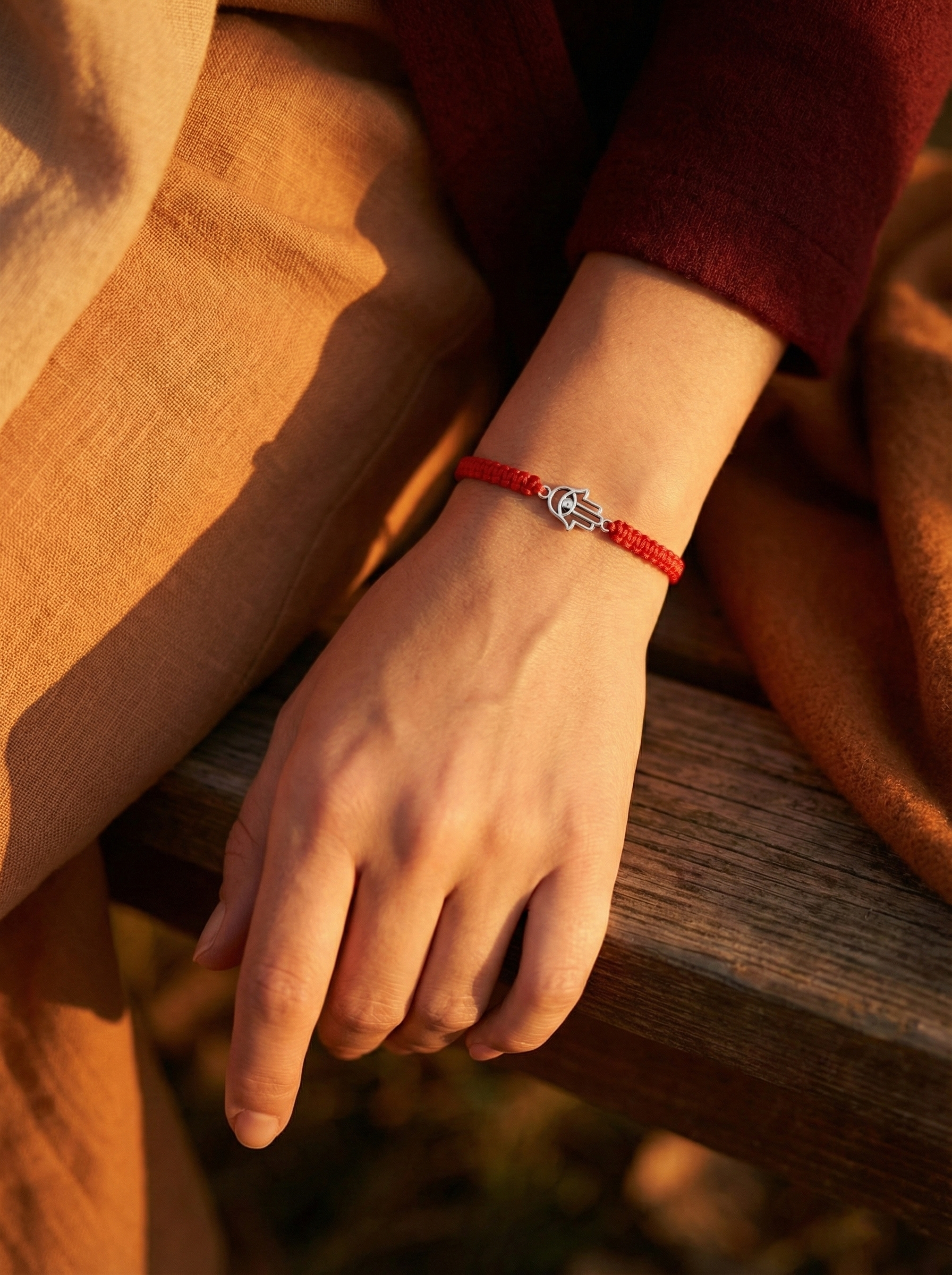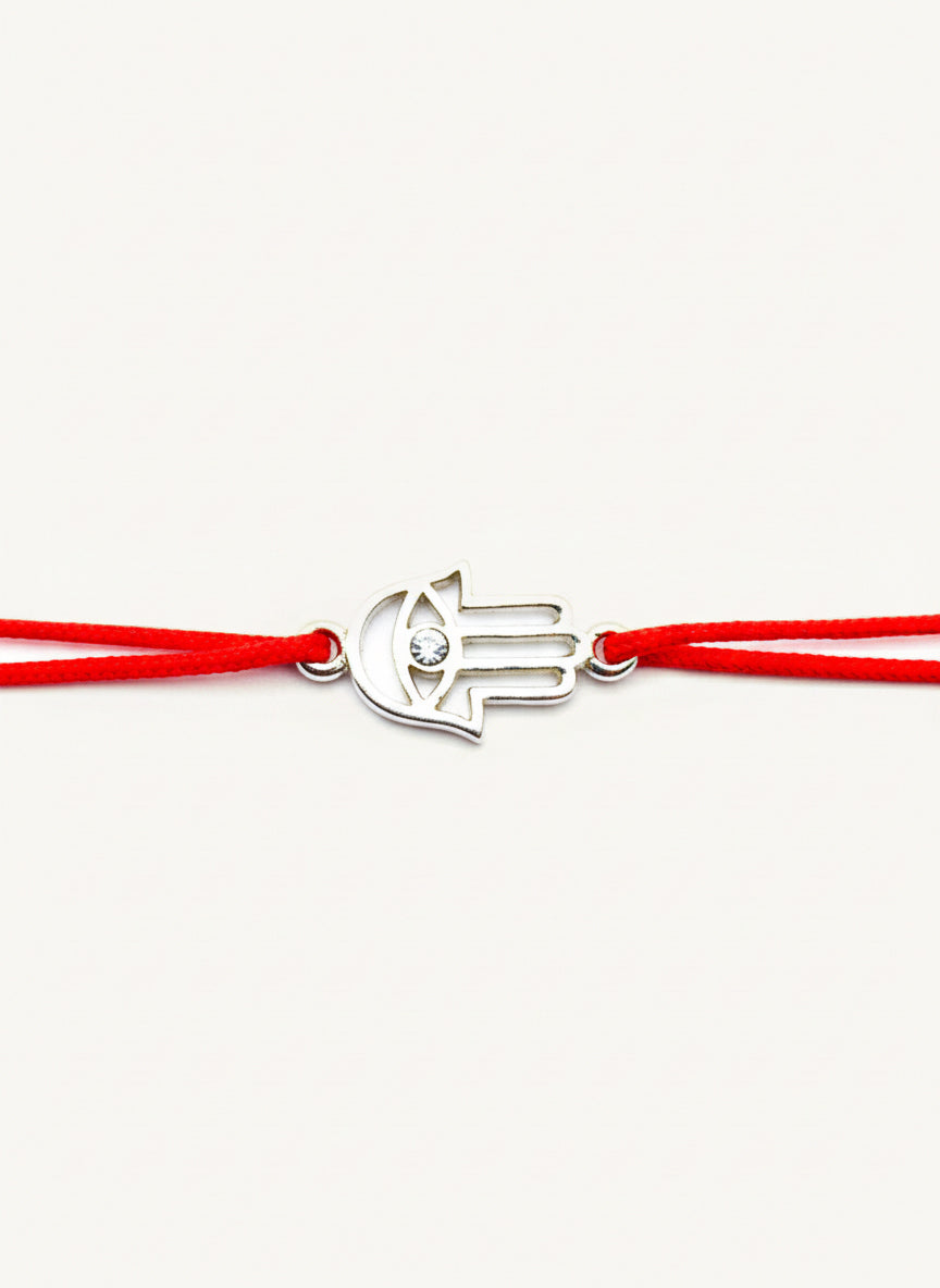 Un scut străvechi împotriva energiilor negative, transformat într-o bijuterie modernă. Talismanul din Argint 925 reproduce simbolul sacru "Hamsa" (sau Mâna lui Fatima), având un design stilizat, cu decupaje fine care îi conferă o estetică aerisită. În centrul palmei veghează un "ochi" protector, marcat discret de un cristal strălucitor de zirconiu, care simbolizează clarviziunea și paza divină. Prinsă pe șnurul roșu, această brățară este mai mult decât un accesoriu – este gardianul tău personal de zi cu zi.