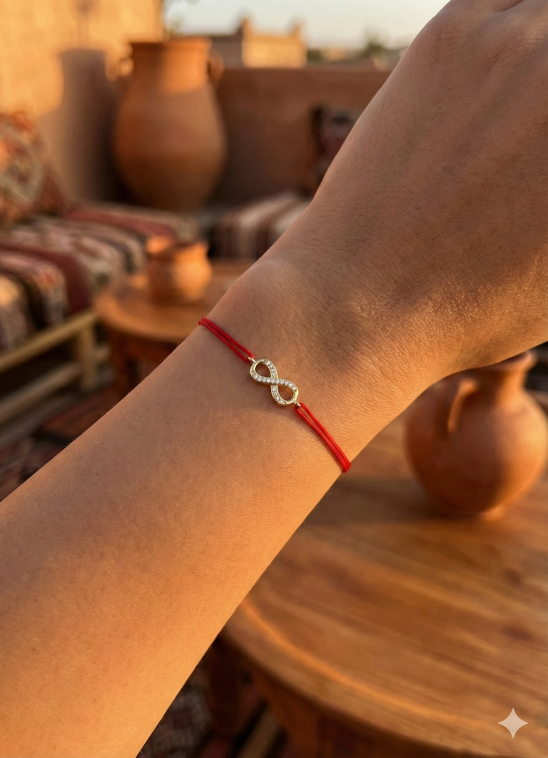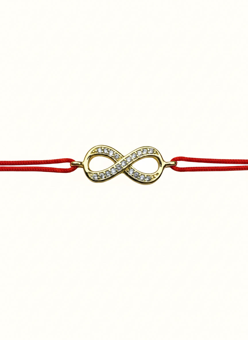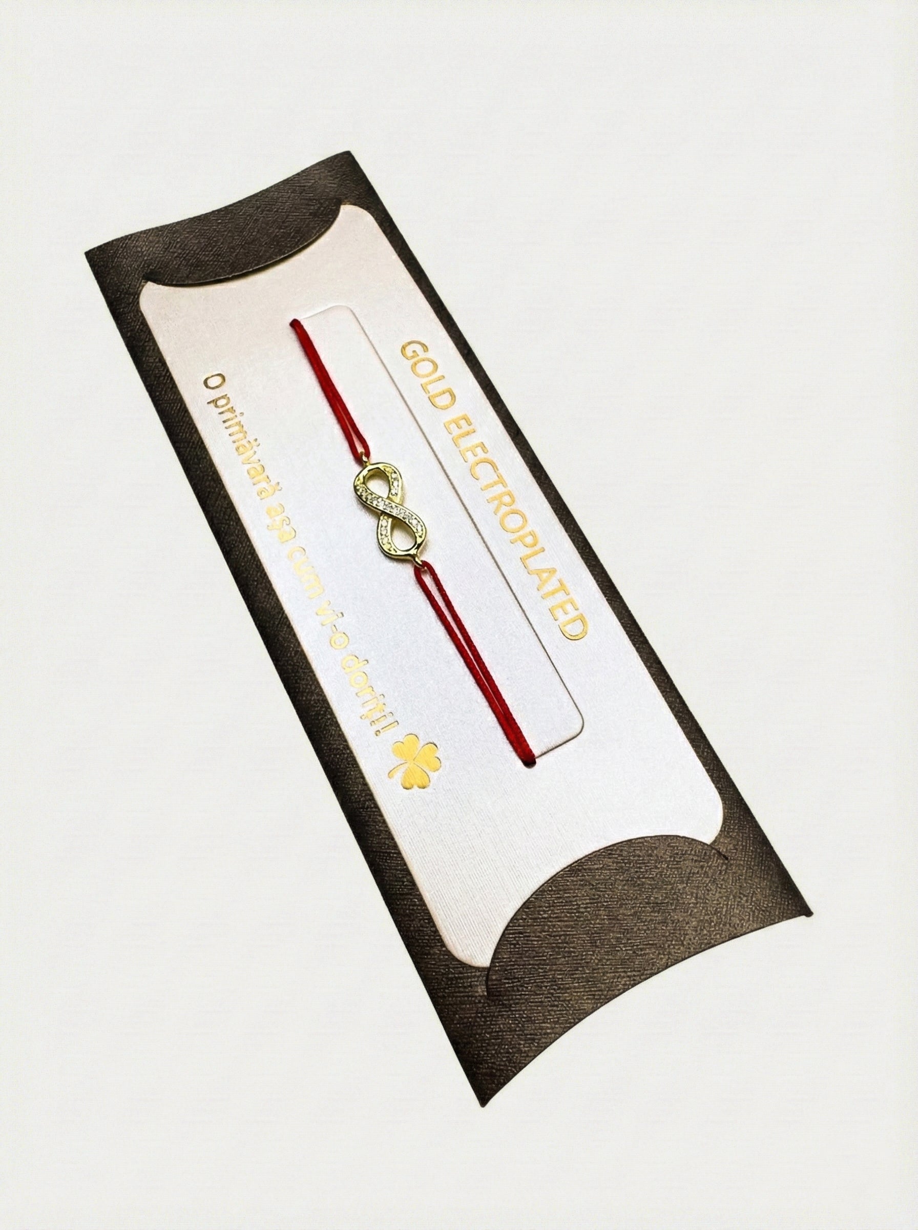 O declarație de afecțiune ce depășește trecerea timpului. Talismanul sub forma simbolului Infinit, finisat în auriu și încrustat cu cristale delicate, reprezintă legăturile eterne și posibilitățile nelimitate. Alăturat șnurului roșu, acest accesoriu devine o promisiune a continuității, fie că sărbătorești o prietenie sinceră sau o iubire nemărginită.